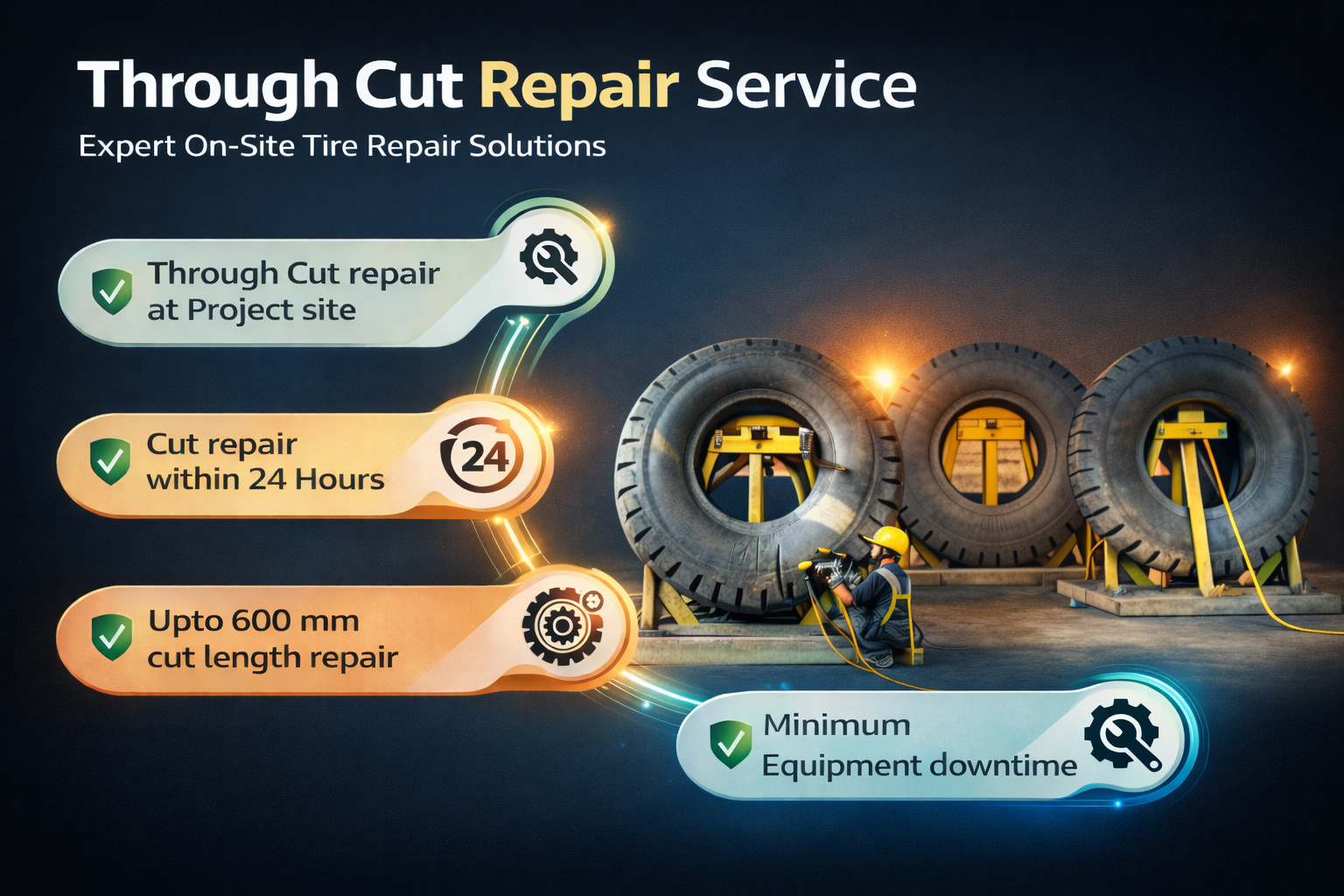 By offering these comprehensive Through Cut Repair Service, Suryakiran Group helps you get the most out of your tyres, ensuring safety and cost-effectiveness for your operations.